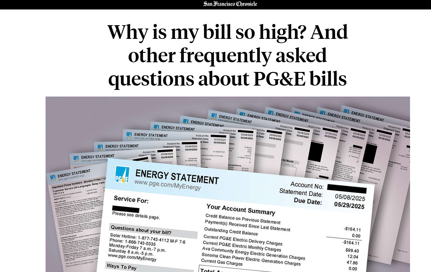 Why is my bill so high? And other frequently asked questions about PG&E bills - An FAQ on some of the most commonly asked questions readers have about their utility bills. What’s with the forecast alerts? When PG&E says I’m using more energy than “the average house of my size,” what does that mean? And why is my bill so high???